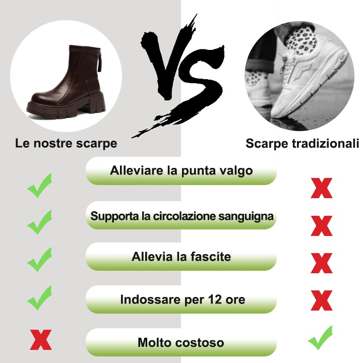 Noi di Ventorte sappiamo che il dolore ai piedi non dovrebbe ostacolare la vita quotidiana. Per questo motivo, integriamo caratteristiche specifiche nel design delle nostre calzature per alleviare il dolore: