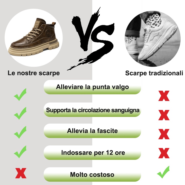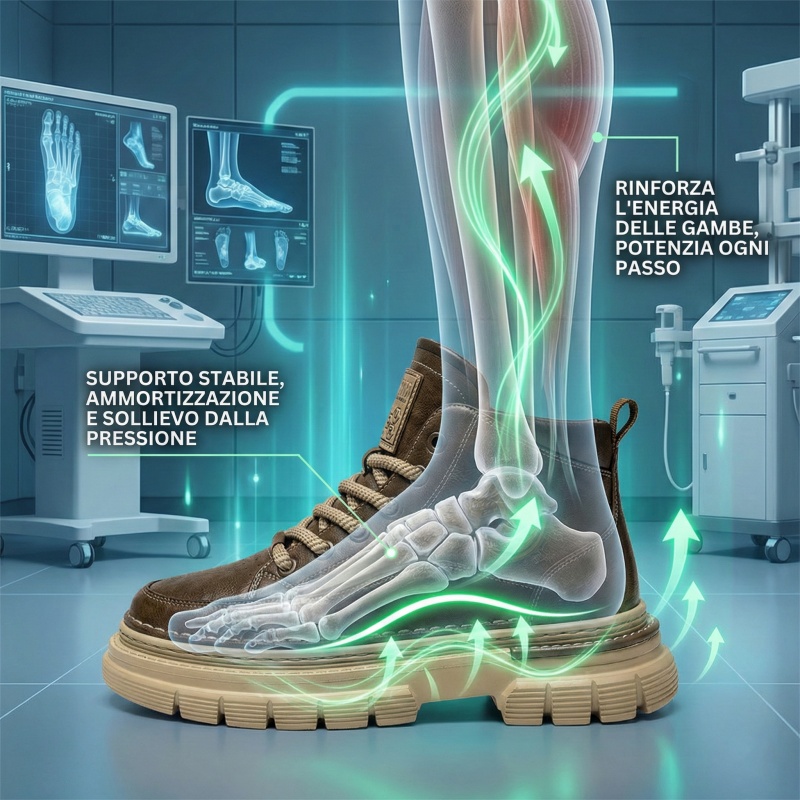 Noi di Ventorte sappiamo che il dolore ai piedi non dovrebbe ostacolare la vita quotidiana. Per questo motivo, integriamo caratteristiche specifiche nel design delle nostre calzature per alleviare il dolore: